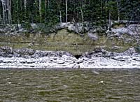Gobdzinas cliffs from the opposite bank of Venta river, entrance in the cave is visible. 2004.02.09.